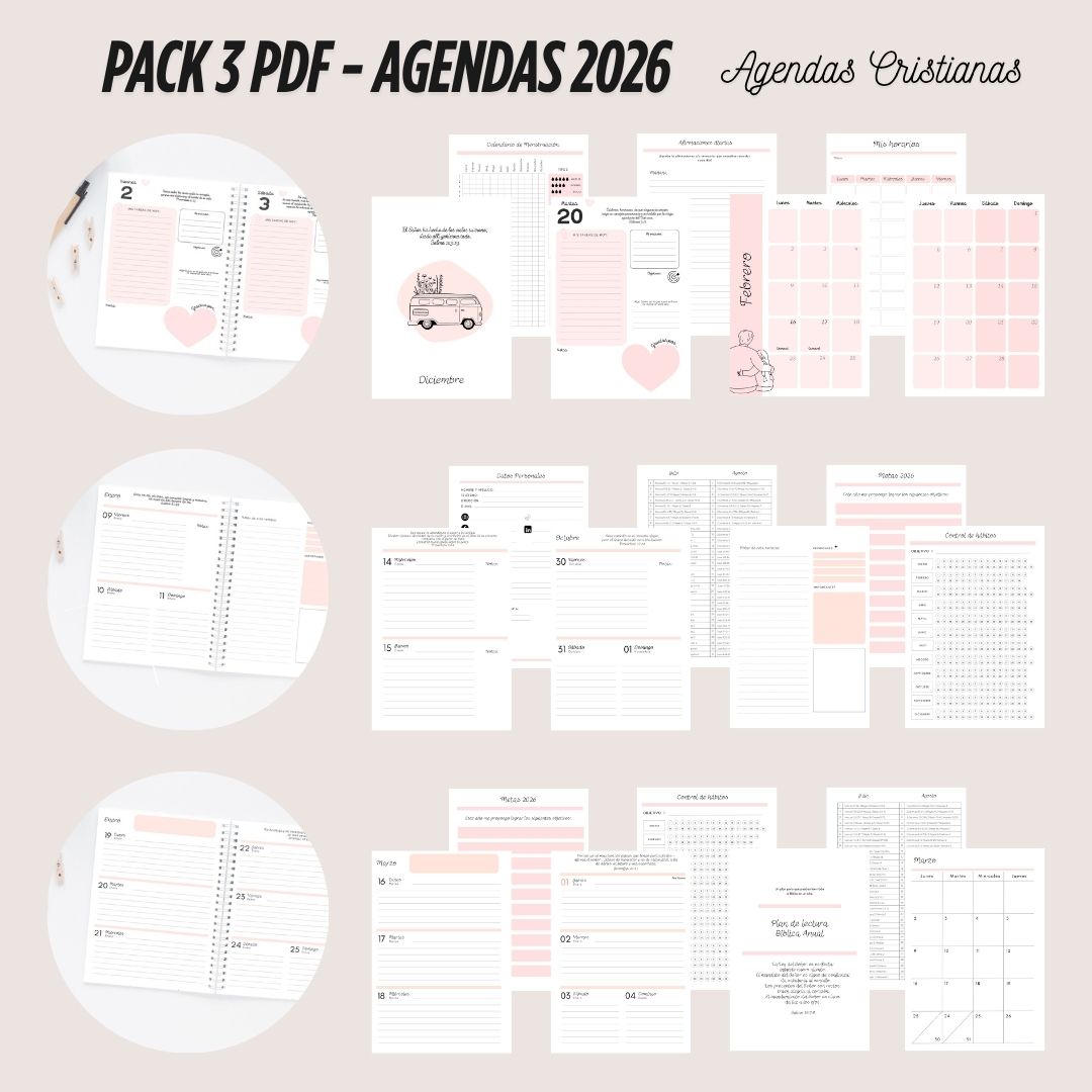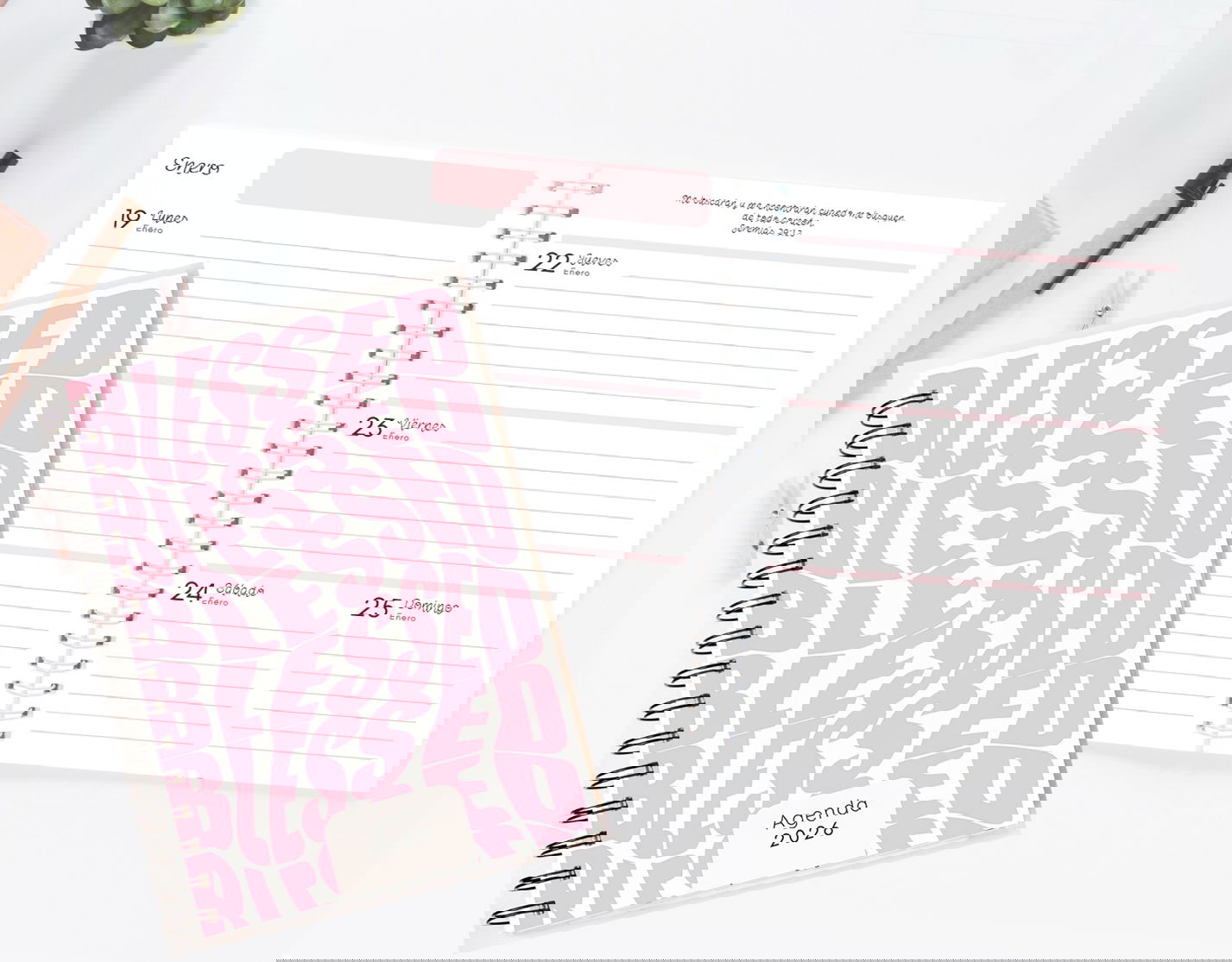 Llevate el Combo Rosa de Agendas Cristianas 2026- Agenda Semanal, 2 días x Página y Diaria!